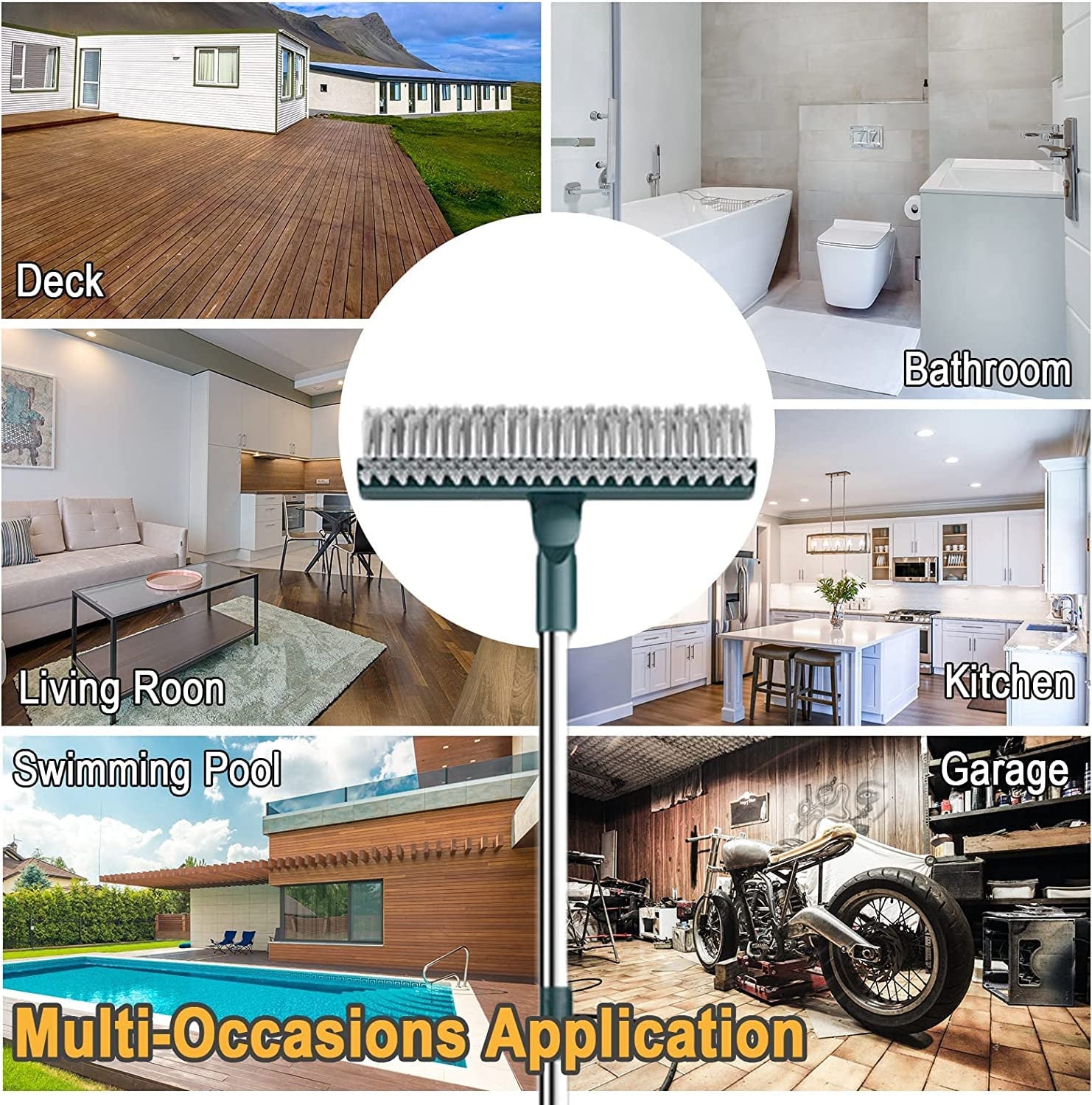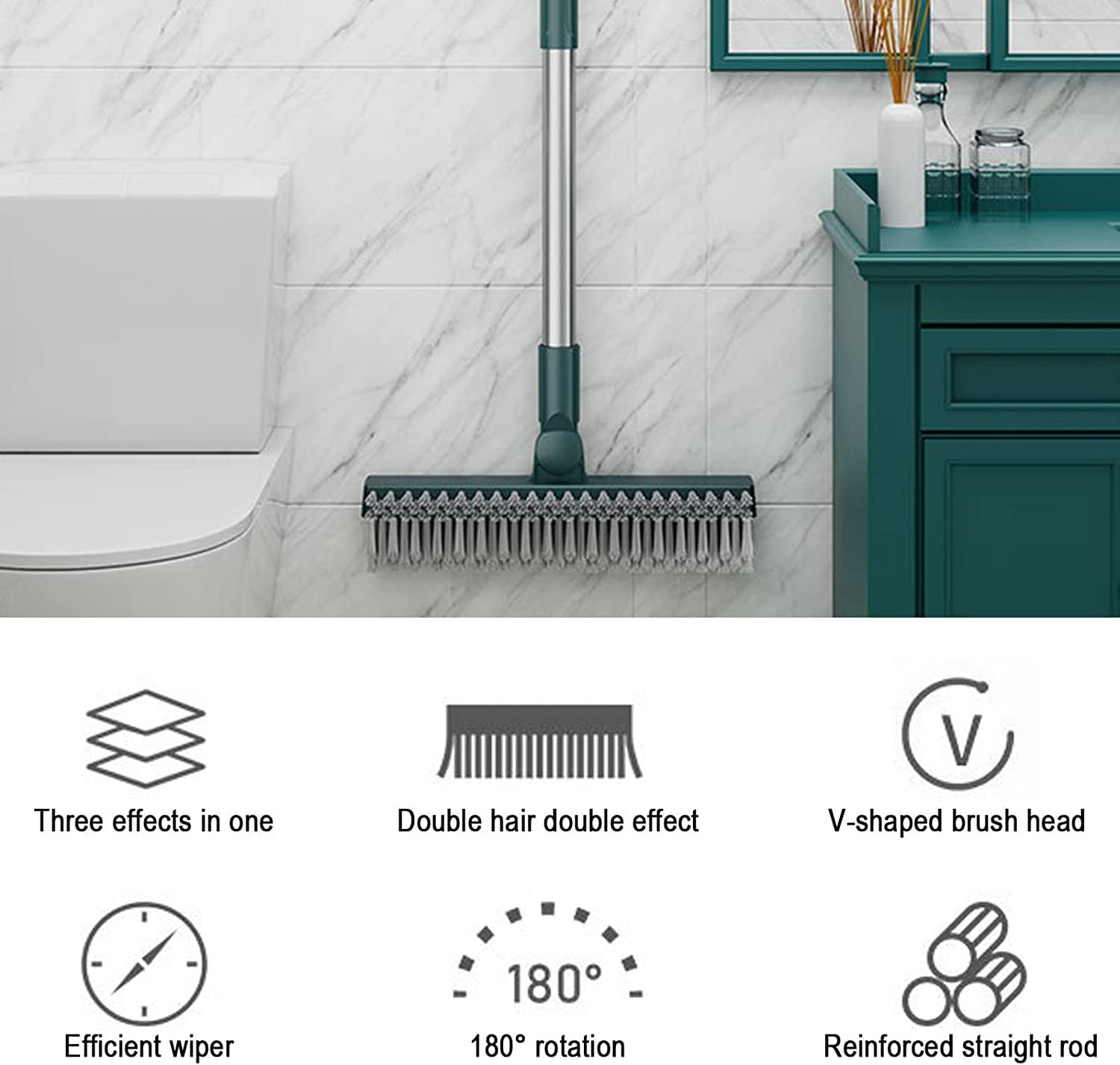 - This 3 in 1 Floor Scrub Brush with stiff bristle + rubber squeegee can handle your problem effectively, Easy & Save Effort. With a V-shaped brush head, Strong cleaning ability