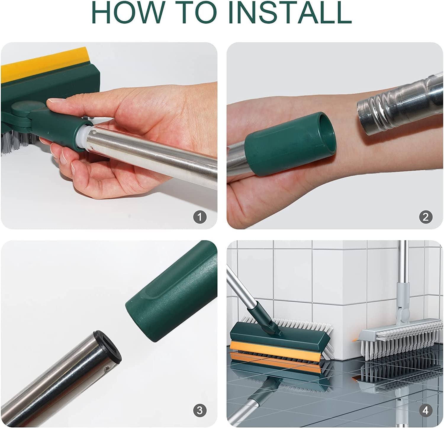 Just screw the pole and brush head, the scrub brush can be used. Poles could be locked via threaded joints easy to rotate and fix. Assembly is very simple and only takes a few seconds to complete.
