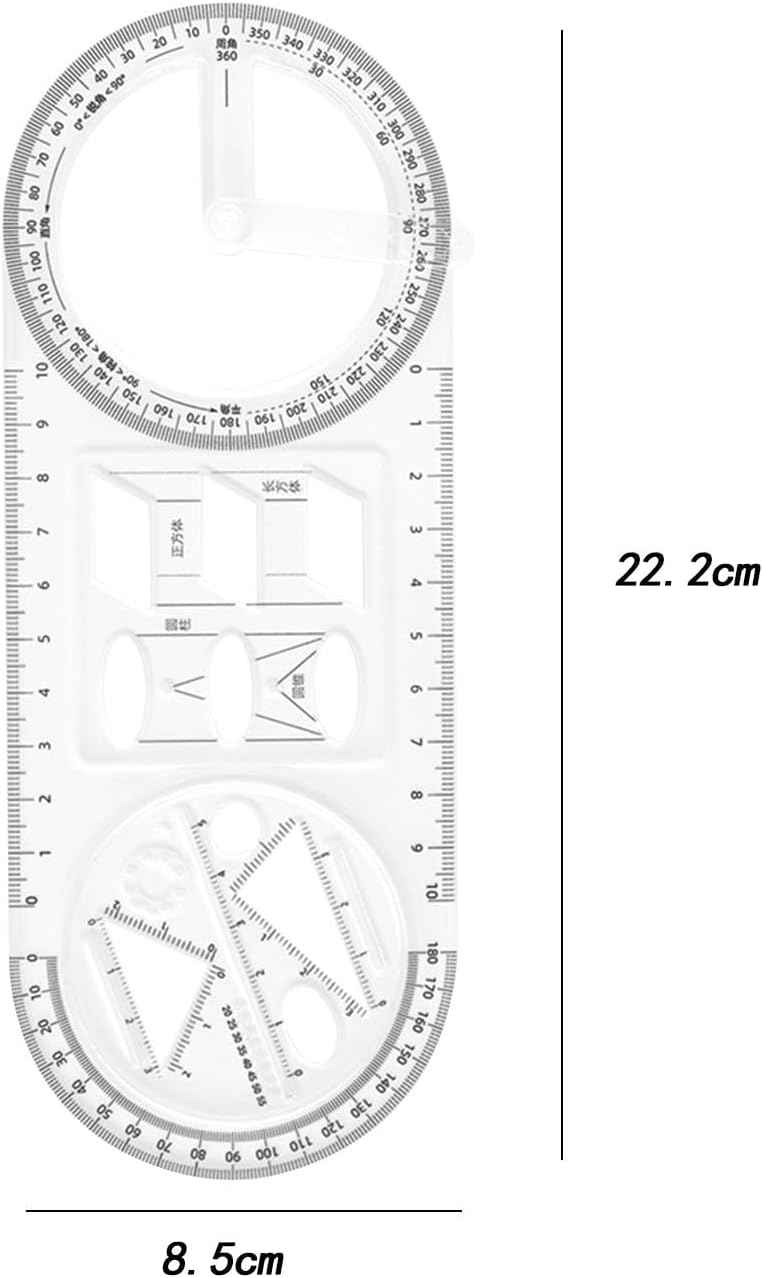 • 【Versatile Functionality】: Mathematics drawing ruler features a 360 movable angle for measuring and drawing angles as well as coordinate . It’s combines the functions of a straight ruler, triangle ruler, protractor, and more.