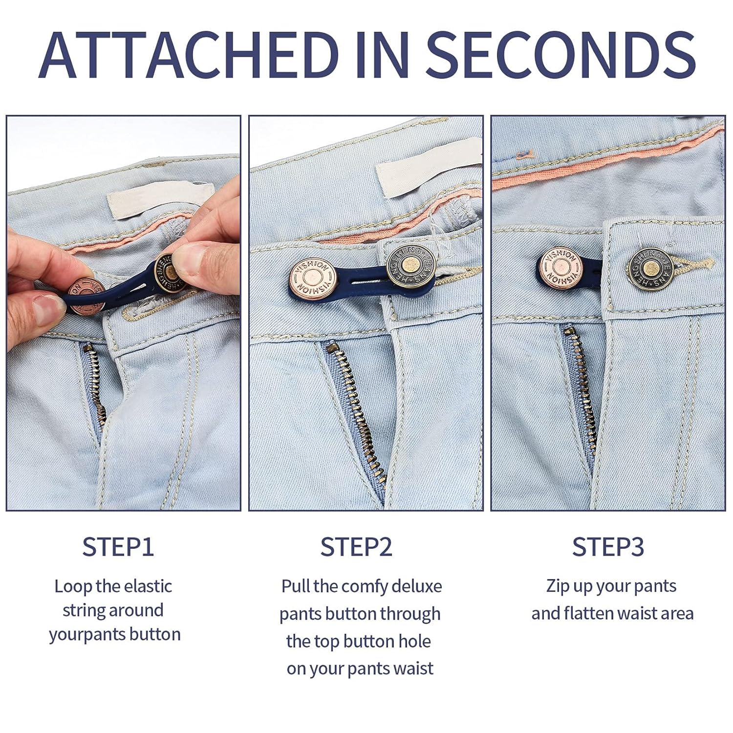 • Material: The no sew metal button jeans pant extender is made of high quality metal, durable and lightweight, not easy to break and come with elasticity, easy to storage and carry, will provide you a long-time service.and this button extender stretches as you need it for the most comfortable fit.