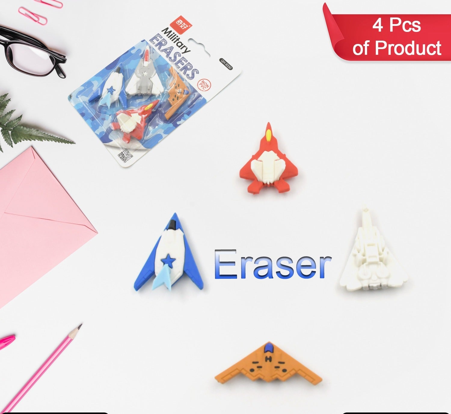 - Educational Pencil Erasers: Our erasers set helps to develop kid’s creativity, patience, and hand-eye coordination. The bright colors and attractive figures will easily attract kid’s attention and draw them to the fancy Gun & Plane.