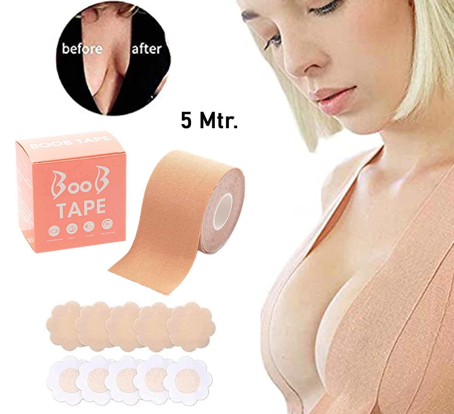 - Suitable for All Breast Types: Whether you have small, medium, or large breasts, our boob tape is versatile and can accommodate all breast sizes and shapes.