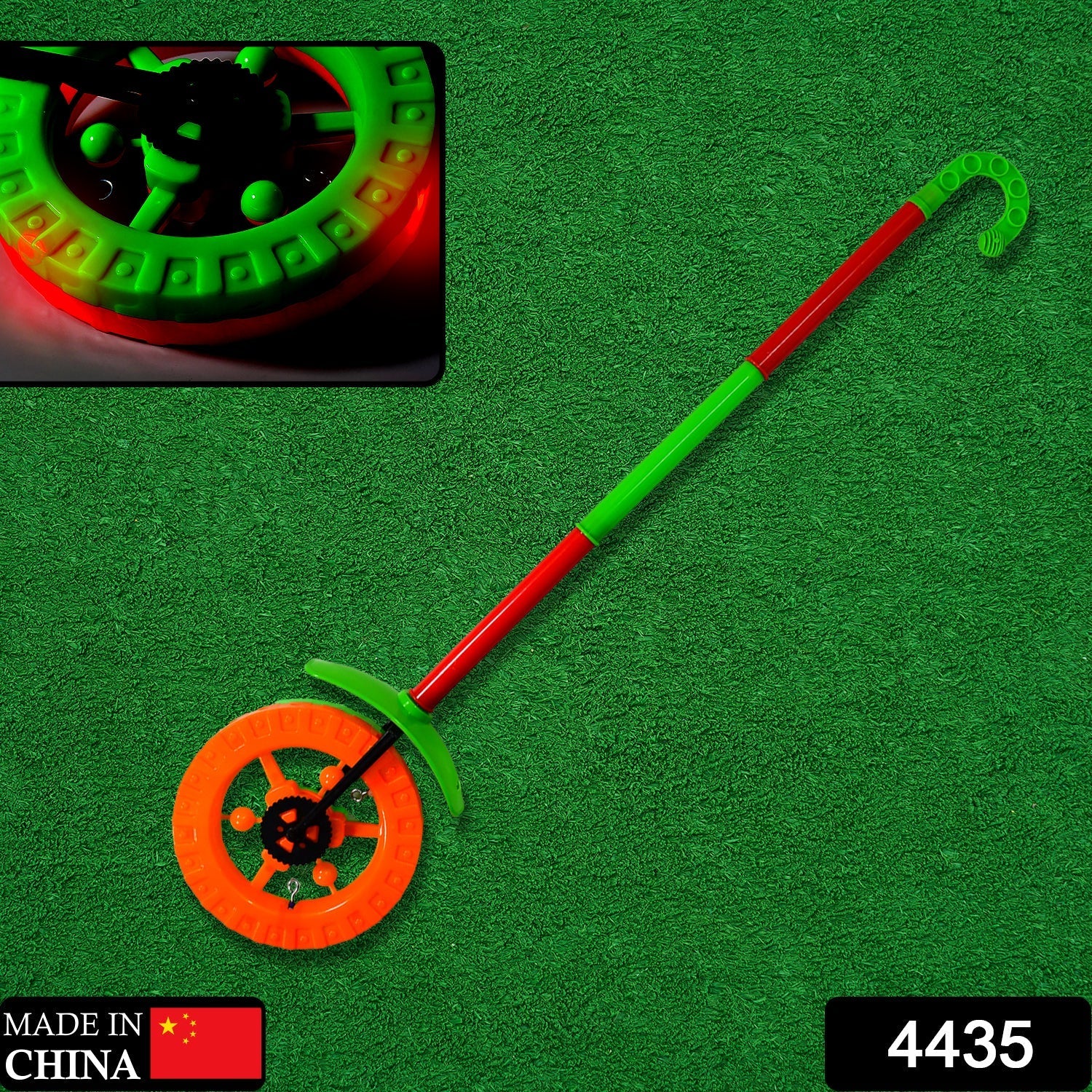 4435 Plastic Single Wheel Push Run toy with handle and two lights on wheel. push toy for Kids.
