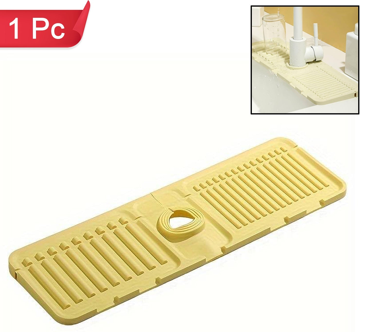 • A sink water splash guard mat specially designed for faucets, the silicone sink faucet splash guard is a labor-saving way to upgrade your kitchen sink. Our silicone faucet splash guard has a raised lip to drain water to the sink. Keep the countertop clean and dry.