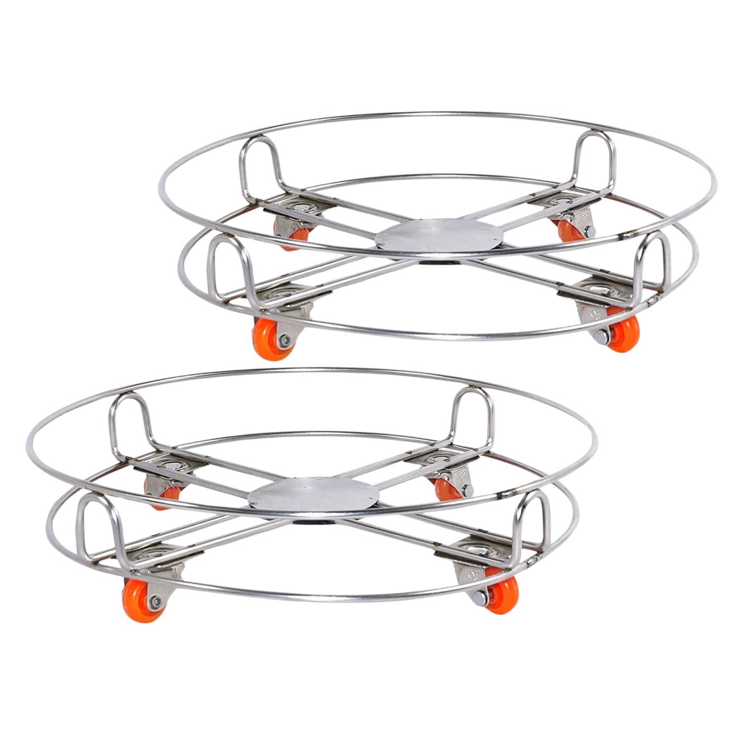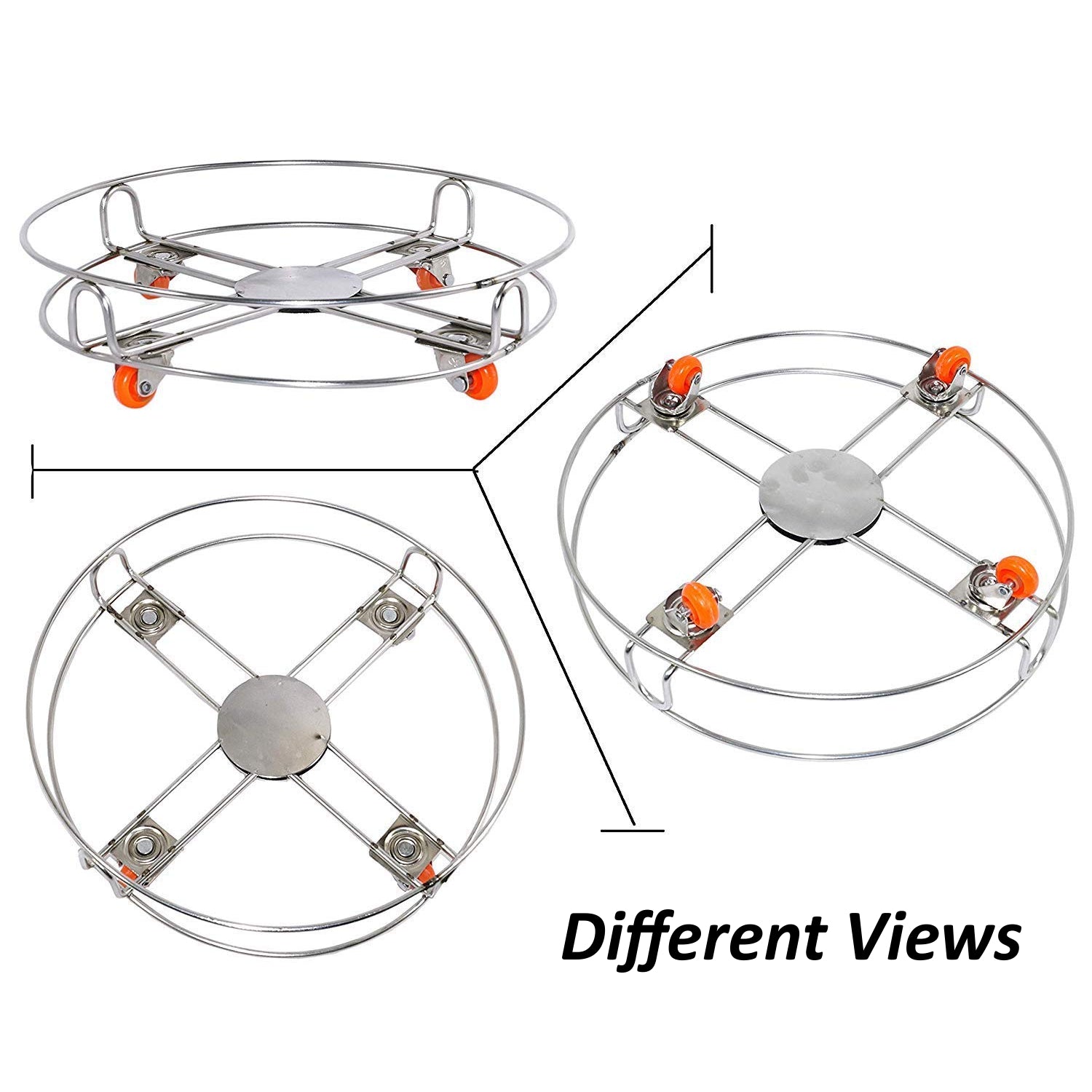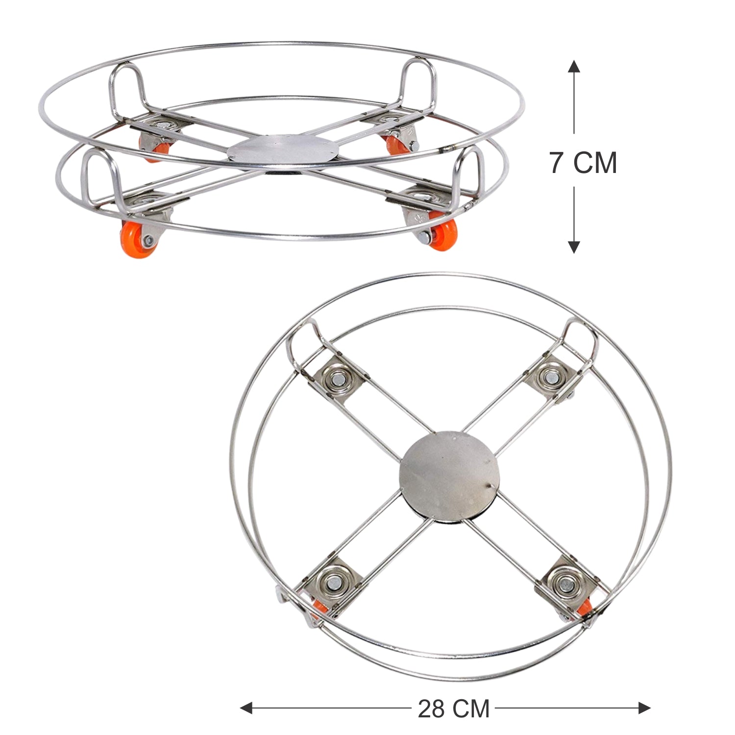 ManiKKshay Stainless Steel Cylinder Trolly with 4 Wheels (Silver)